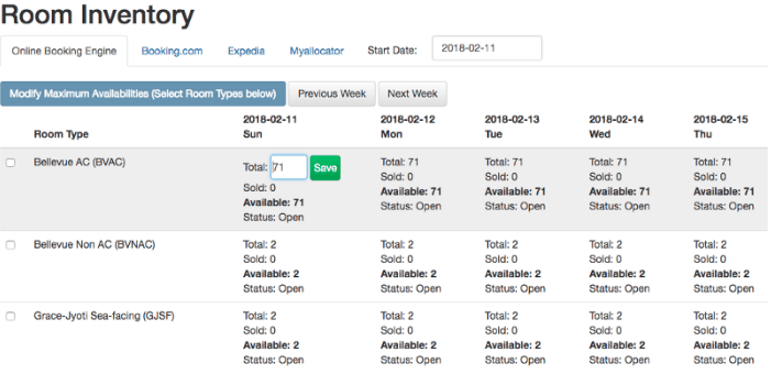 To close the inventory for a particular room type, click on the status option, this will give you two options, Open and Close, choose Close and the that Room Type will be closed.